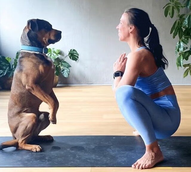 Rottweiller on doing yoga